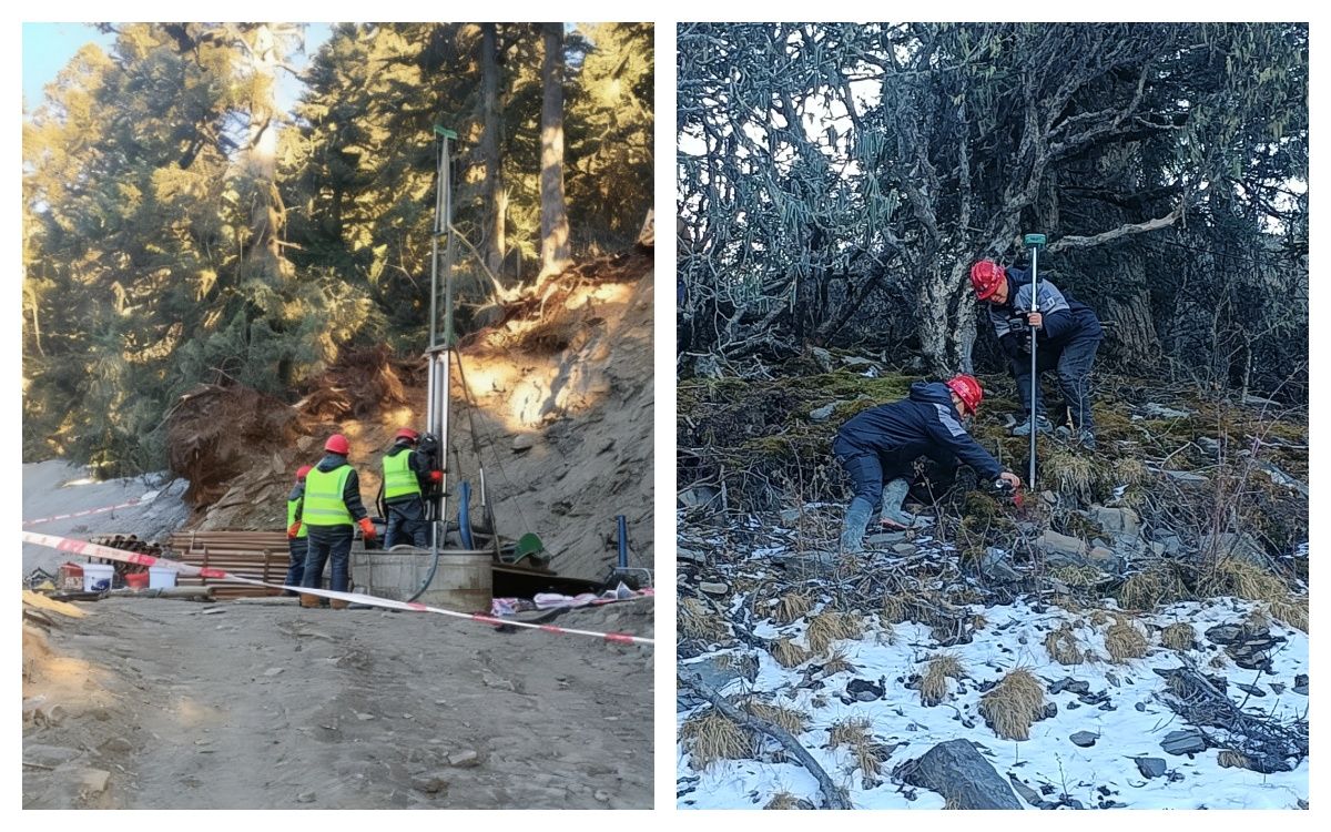 海拔3800多米的川西高原深处,马尔康市党坝矿区早已披上厚厚的银装,气温降至零下十几度。就在这片严寒笼罩的冰雪世界,由我总队(公司)承担的党坝矿区锂矿采选工程溜破系统、进风井、回风井及配套500万吨/年选矿厂尾矿输送隧洞工程地质勘察项目已全面启动。面对高海拔、极低温、复杂地质与紧迫工期的重重考验,项目团队迎寒而战,正式打响了这场为锂矿开发铺路的先锋攻坚战。